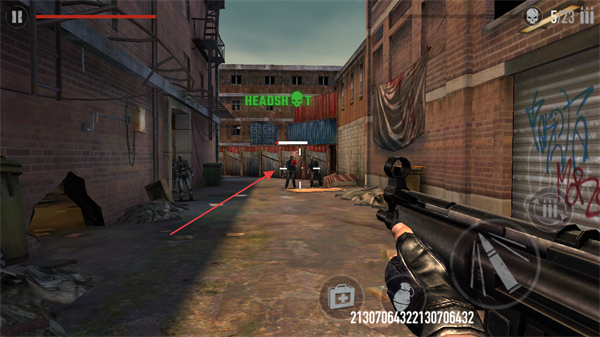 3、近距離遭遇僵尸,保持冷靜,持續射擊,留意自身生命值和子彈量。