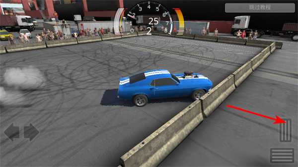 1、掌握漂移操作,在赛道上通过右侧的操作按钮,控制蓝色赛车进行漂移,利用漂移技巧在弯道处积累分数,提升表现。