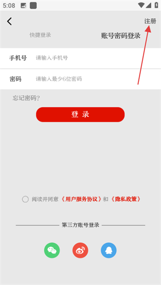 3、在登录页面,点击右上角注册,进入账号注册页面。