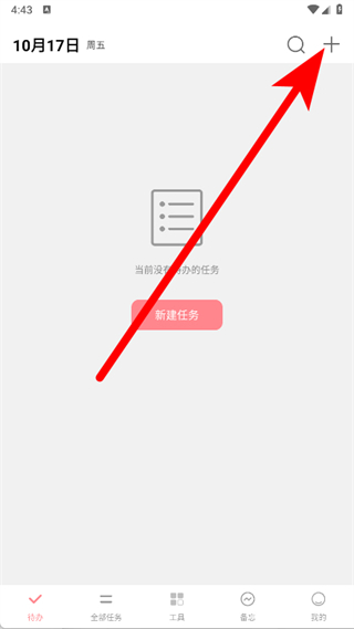 1、打开明天计划安排表,点击主界面右上角+号。