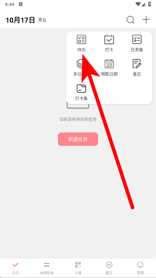 2、在弹出菜单,点击选择待办,进入任务创建页。