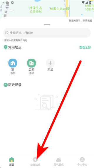 1、打开掌上出行公交,进入主界面后,点击底部导航栏的公交站点选项。