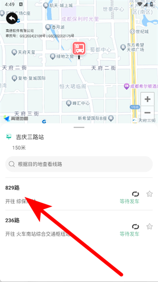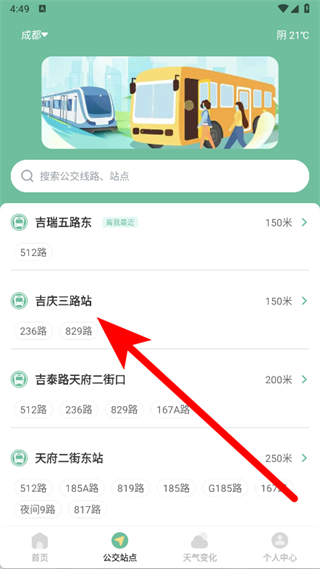 2、在公交站点展示页面,列出附近的多个公交站点,挑选你想要查询的目标站点。