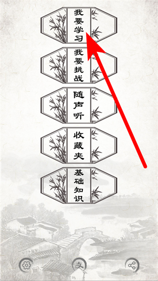 1、打开小学必背古诗,进入主界面功能选项,点击最上方的我要学习。