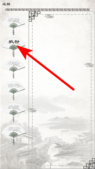 2、进入学习分类页,左侧扇形选项,点击教材。