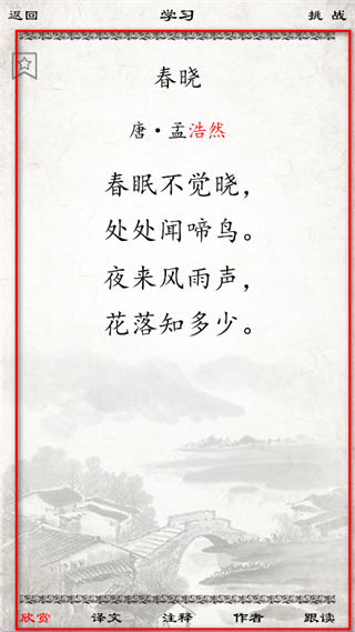 4、进入古诗学习页,查看原文,页面下方功能,方便随时随地学习小学必背古诗。