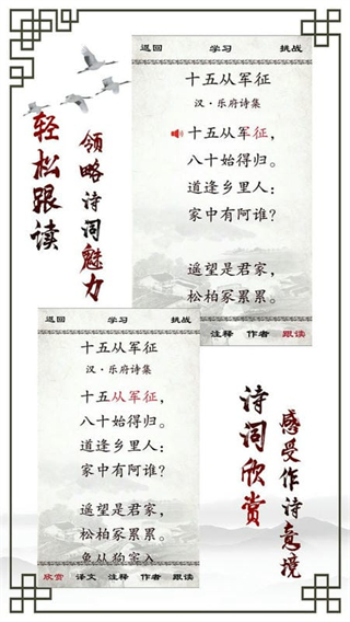 融入古诗插画、情景小故事,设置填空背诵、诗句连线等小游戏,将枯燥记忆转化为趣味互动,提升孩子主动学习古诗的积极性。