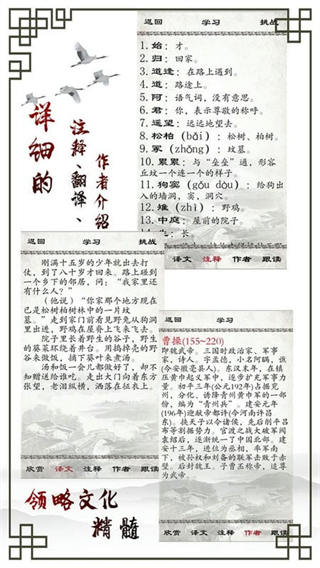 结合考试高频考点,标注每首诗的易错字、常考句子与思想情感,附简单考题练习,让学习更贴合升学需求。