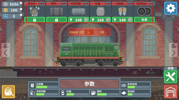 游戏操作界面简洁易懂,无论是进入车间、修理列车,还是升级部件,按钮布局都十分清晰,让玩家能随时了解火车情况和升级进度,降低操作门槛,带来舒适的体验。4、经济与车辆升级关联