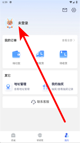 3、在我的页面,点击未登录区域,进入登录界面。