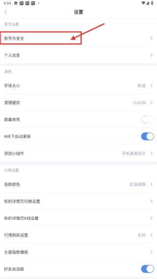 3、在设置界面,选择账号与安全选项,进入账号安全页面。