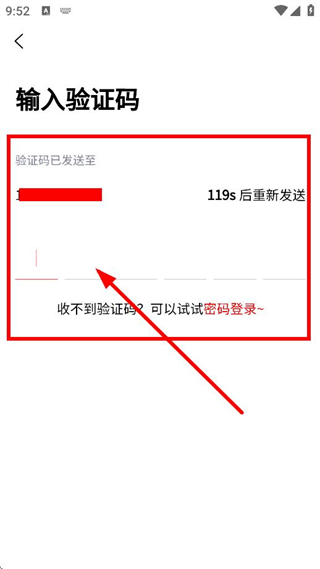 4、在输入验证码页面,输入收到的验证码,完成登录操作。