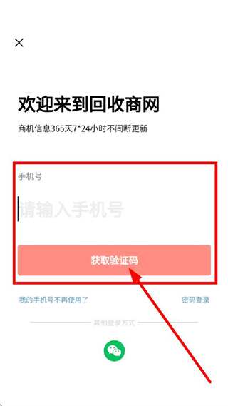 3、在登录页面,输入手机号后,点击获取验证码,获取验证码。