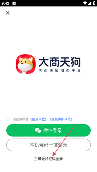 3、在登录选择页面,点击手机号验证码登录,进入手机号验证码登录页面。
