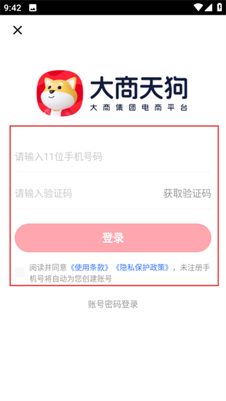 4、在登录页面,输入信息,同意协议后,点击登录完成登录操作。