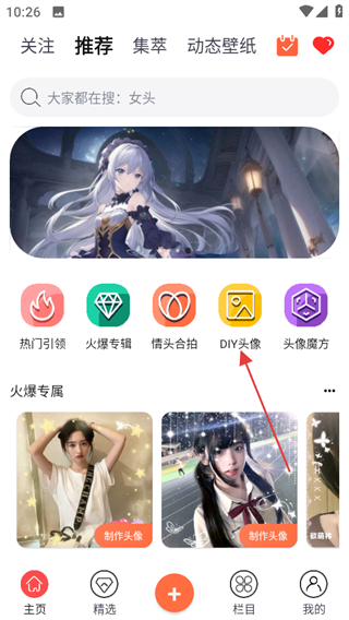 1、进入柠莓,在主页点击DIY头像,进入DIY头像页面。
