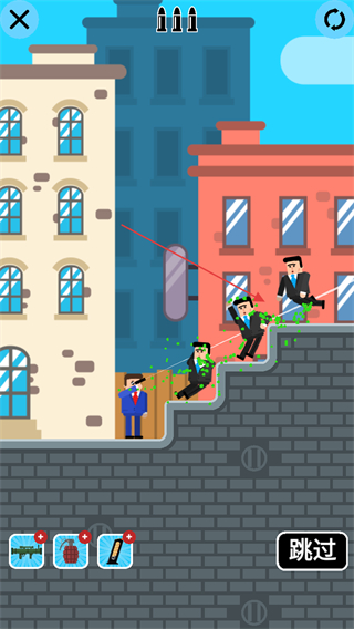 3、若一次未成功击败敌人,合理规划剩余子弹,再次调整角度射击。