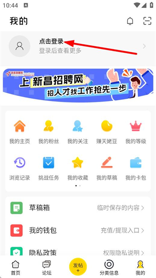 2、在个人页面,点击登录,进入账号密码登录页面。