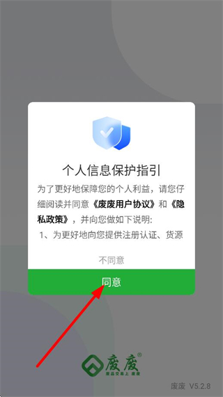 1、在个人信息保护指引弹窗中,点击同意,进入APP首页。