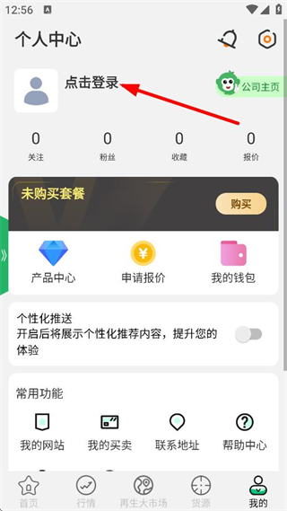 3、在个人中心页面,点击点击登录,进入登录页面。
