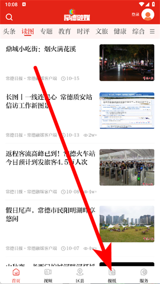 1、打开常德融媒,进入主界面后,点击页面底部的报纸选项。