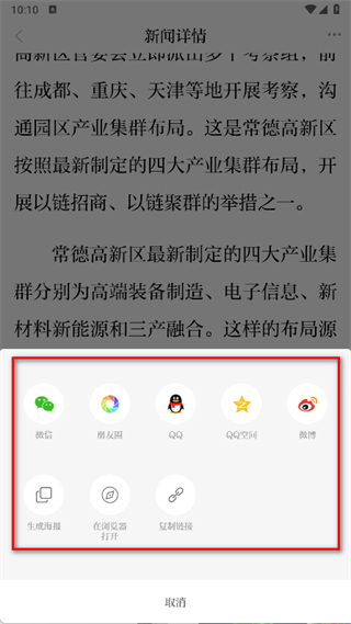 4、点击分享图标后,弹出包含多种渠道的分享选项框,选择对应渠道分享。