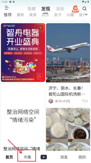 1、打开本地生活类应用,点击底部市集选项,进入市集板块。