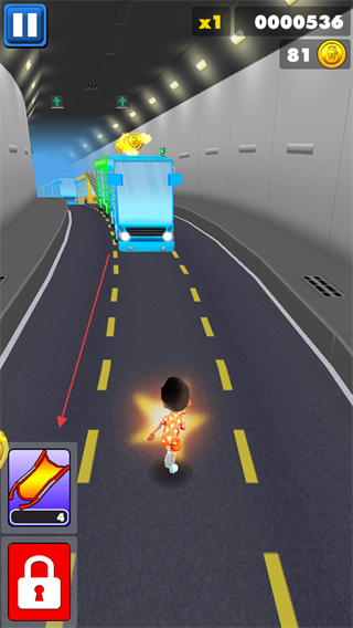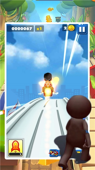 3、当角色获得加速道具时,如火箭图标,点击道具图标可以让角色加速奔跑,获取更多金币。