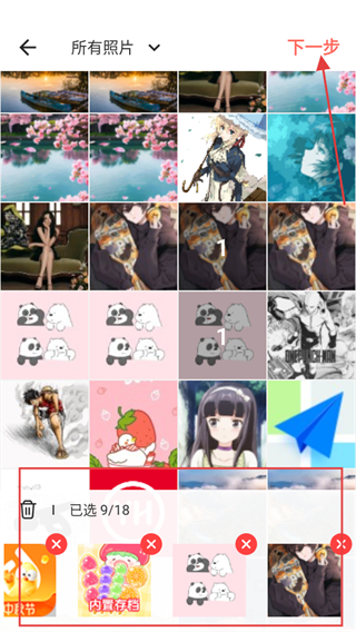 2、在照片选择页面,选择要拼图的照片后,点击下一步,进入拼图编辑页面。