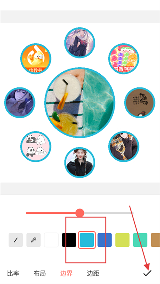 4、在边界板块设置边界颜色,完成后点击确认图标,结束拼图操作。
