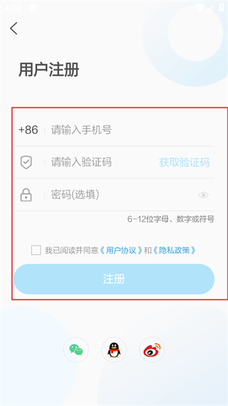 4、在注册页面,依次输入信息,同意协议后点击注册,完成注册流程。