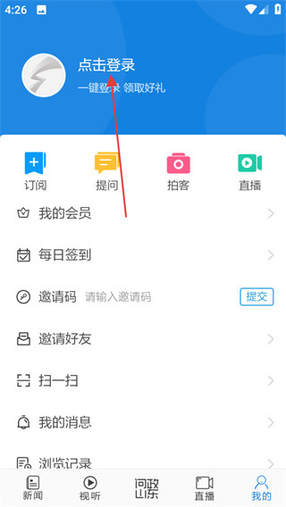 2、在个人页面,点击点击登录,进入用户登录页面。