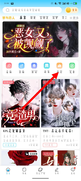 1、打开话本小说,进入首页,点击排行选项。