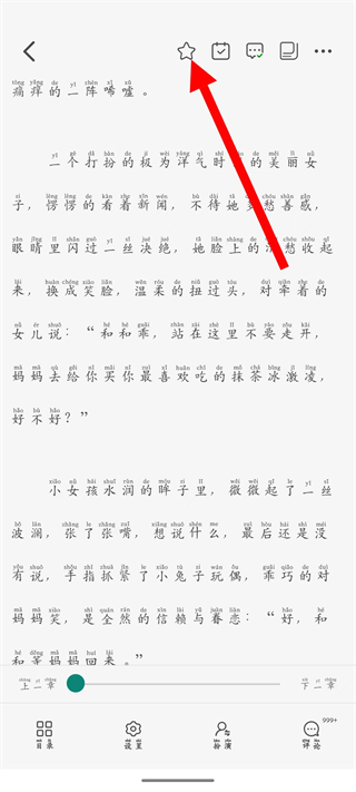 4、能沉浸式阅读小说内容,点击页面顶部的星形图标,将这部小说收藏起来,方便之后查找阅读。