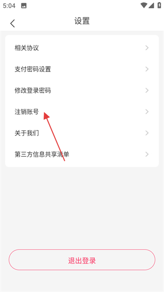 3、在设置页面,点击注销账号,进入注销账号确认页面。