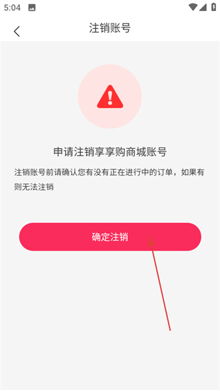 4、在注销账号确认页面,点击确定注销,即可申请注销享享购商城账号。