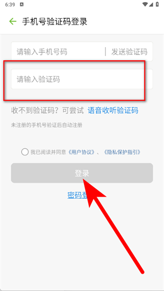 4、输入收到的验证码,点击登录按钮,完成注册登录。