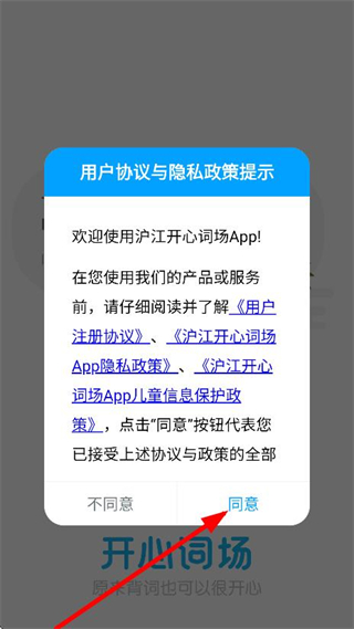 1、在用户协议与隐私政策提示弹窗中,点击同意,进入注册/登录页面。