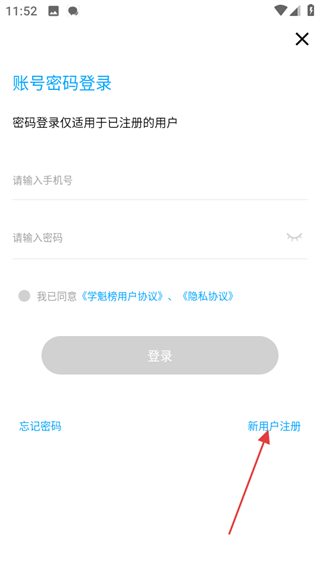 3、在登录页面,点击新用户注册,进入新用户注册页面。