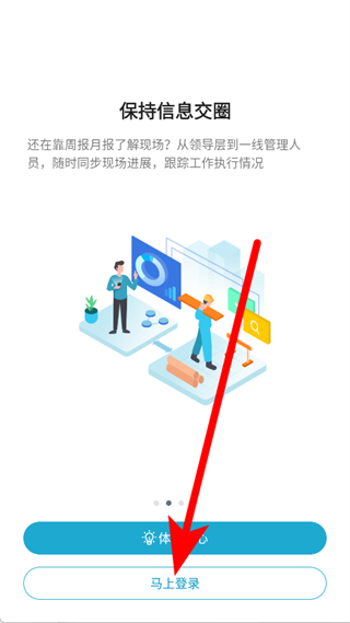 1、打开工程管理,在展示保持信息交圈功能的引导页,点击马上登录。