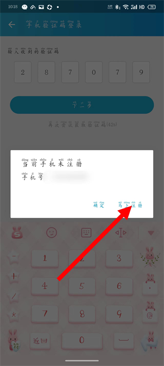 5、弹出当前手机未注册弹窗,点击去注册,完成注册后登录。