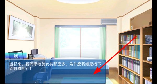 2、玩家体验时游戏会以文字形式呈现剧情,点击跟随文字了解主角在校园里找对象的相关经历与想法。