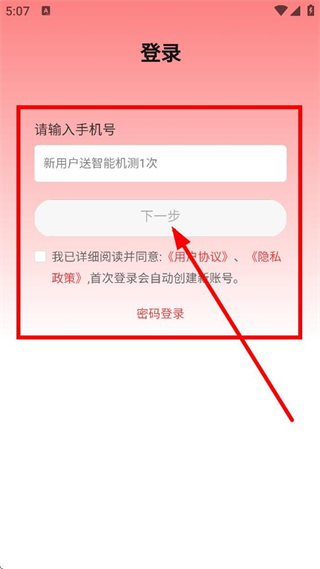 3、在登录页面,输入手机号,点击下一步,进入验证码输入页面。