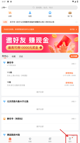 1、打开掌上公交应用,点击底部我的选项,进入个人中心页面。