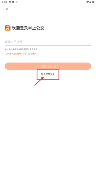 3、在登录界面,点击账号密码登录选项,进入账号密码登录页面。