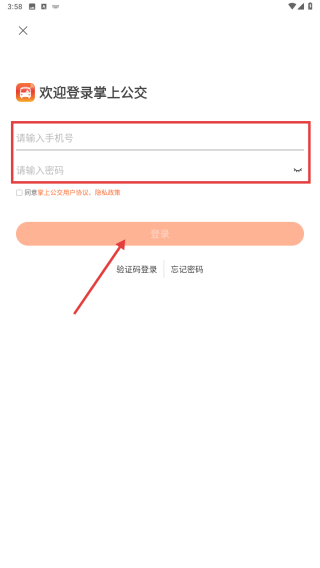 4、在账号密码登录页面,依次输入手机号码、密码,然后点击登录按钮,完成账号登录操作。