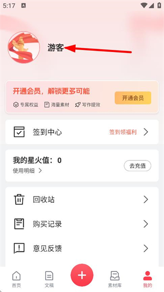 3、在个人中心页面,点击游客,进入登录页面。