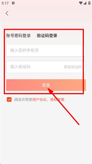 4、输入手机号、验证码,点击登录,完成登录操作。