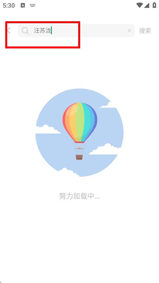 2、在搜索页面,输入歌手汪苏泷,等待搜索结果加载。