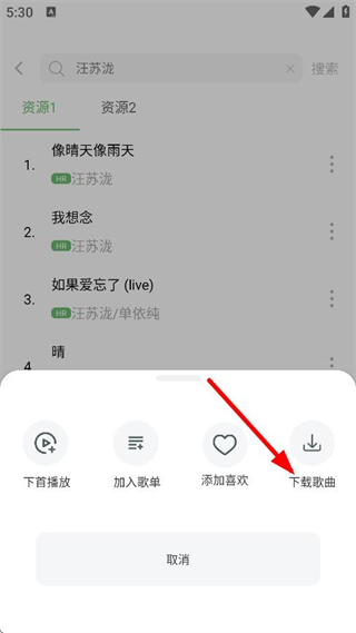 4、在操作选项中,点击下载的歌曲,可下载该歌曲。